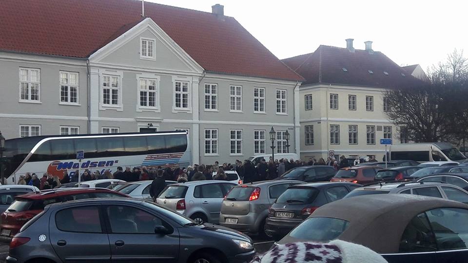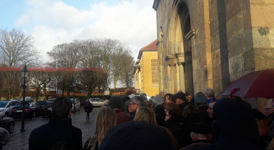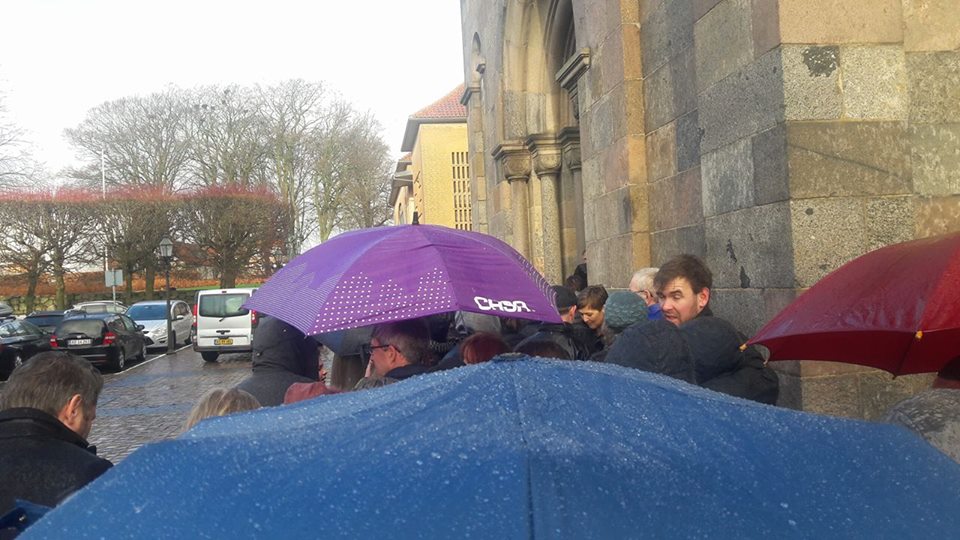 Allerede kl. 13.30 var der kø ved indgangen til Domkirken, og efterhånden som tiden nærmede sig kl. 14.00, var der køer hele vejen langs Skovgårds Museet og hen i Mogensgade, hvor også flere busser holdt parkeret.