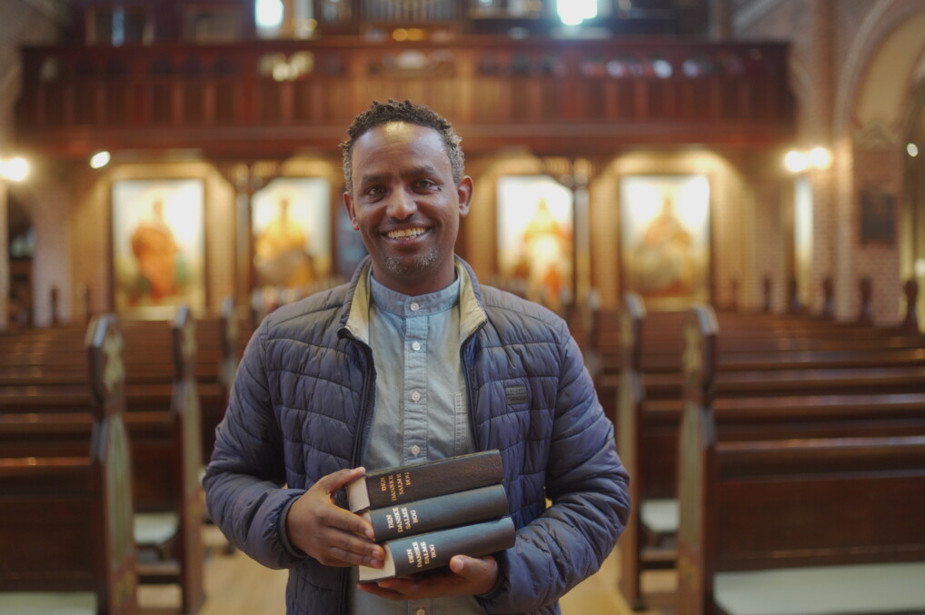 Abel med salmebøger (Foto: Christoffer Fryd)