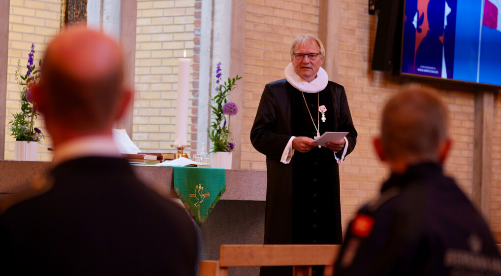 Biskop Henrik Stubkjær holder prædiken ved flagdagen i Fredens kirke. Foto: Henrik Helms.