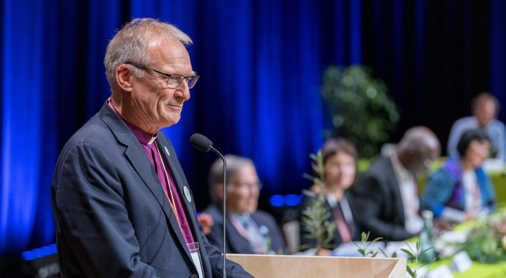 Biskop Henrik Stubkjær på talerstolen i Krakow. Foto: LWF/Albin Hillert