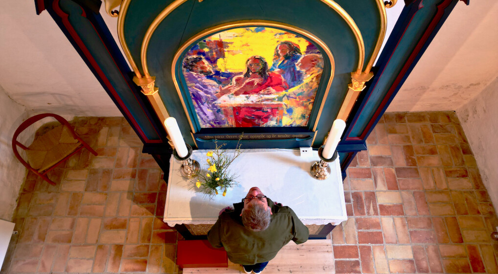 Troels Laursen foran alteret i Thorum kirke