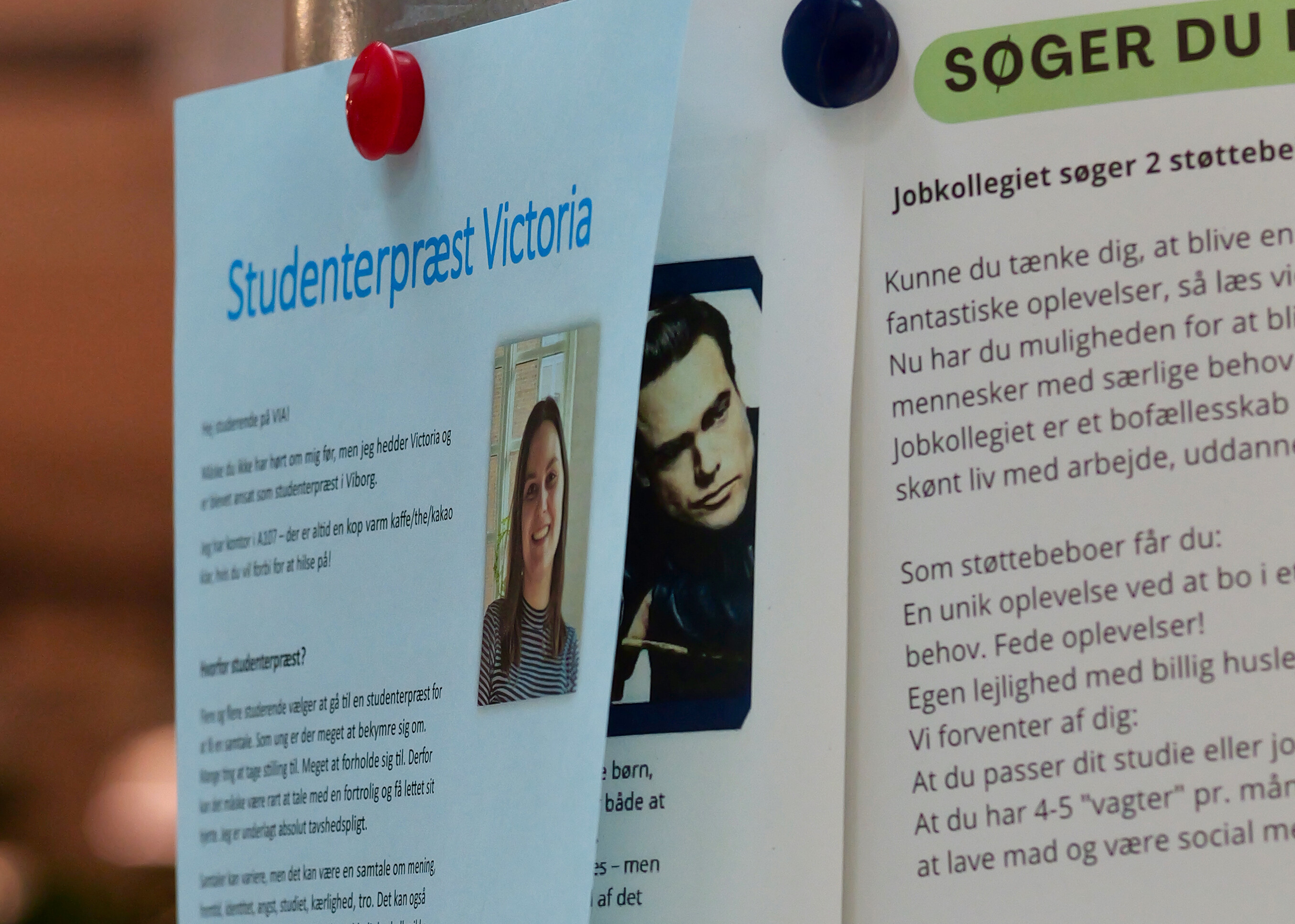 Nummeret til Victoria har de fleste fundet på en meget gammeldags facon ved at hive hendes nummer af en af de plakater, der hænger rundt på campus, med et billede af Victoria og et tilbud om at snakke med studenterpræsten.