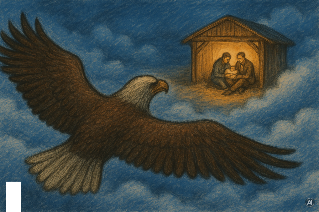 Evangelisten Johannes afbilledes med ørnen, den vældige fugl der ser det hele oppefra, det store perspektiv. Sådan er det også denne Juledag.