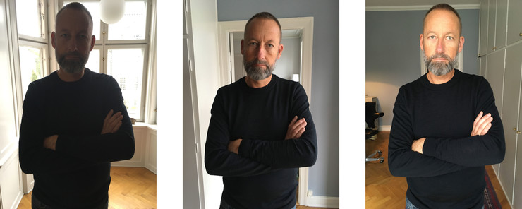 Samme kamera, samme tid og sted, samme model, men i modlys, sidelys og medlys – hvilket billede er bedst?. (iPhone SE)