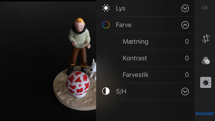 Fotos-app på iPhone. Sæt dig ind, hvilke muligheder, du har for efterfølgende at redigere billederne: Belysning, farver, beskæring etc.