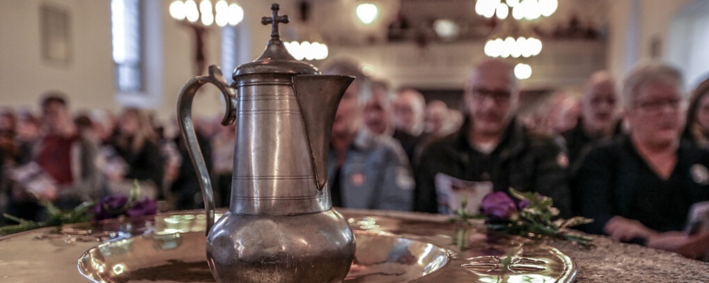 Fra venstre: Stiftsrådsmedlem Arne Bach, Sognepræst Heidi Røn, Stiftspræst Thomas Felter, Organist Thomas Olesen, K & K-medarbejder Lisa Bjærre Olsen og Sognepræst Hanne Marie Meier.
